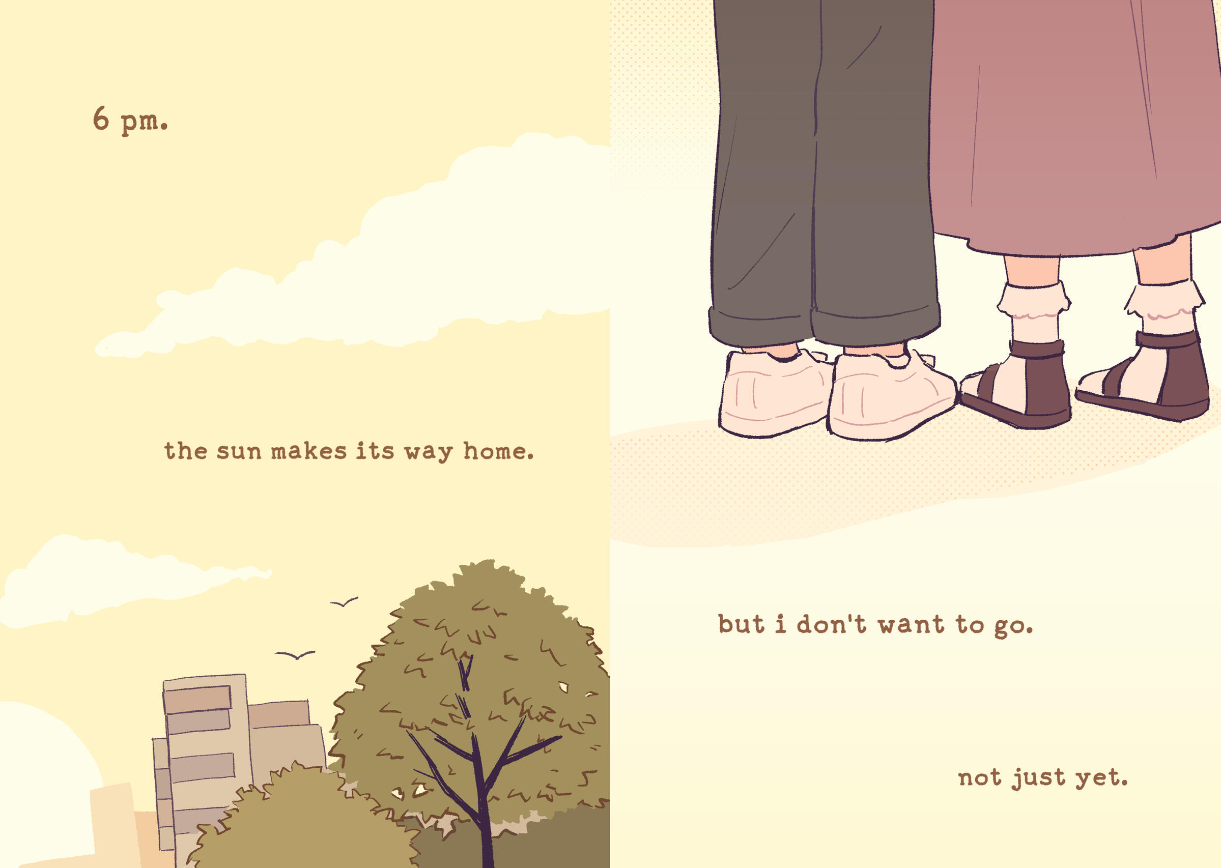an illustrated zine about a pair of best friends who want to be captured still and unmoving in a snapshot of the now.