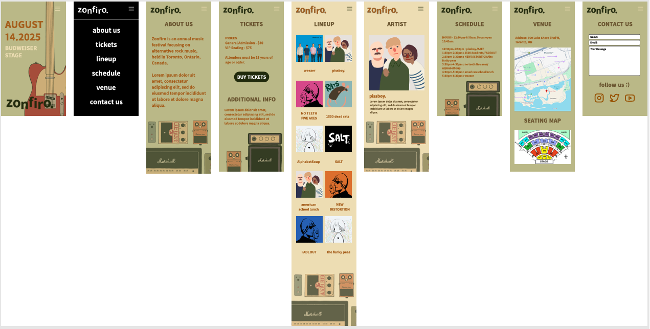 Branding Assignment for the non-existent music festival "Zonfiro". Poster, Mobile Website, and Instagram carousel.
